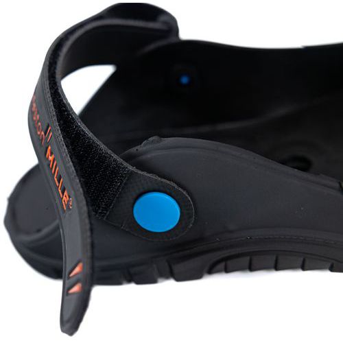 Overshoes made from a flexible material that can be worn with all types of footwear. Practical with adjustable hook-and-loop strap, slips over the shoe. Hygienic washable and rot-proof material. Cost-saving reusable design. Hydrocarbon resistant. Made in the EU Norm EN 345 (J) : 240 CE