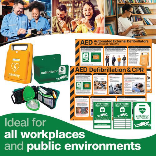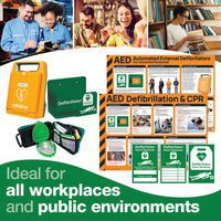 - Includes two posters and three signs to show AED location and support untrained users in an emergency.
