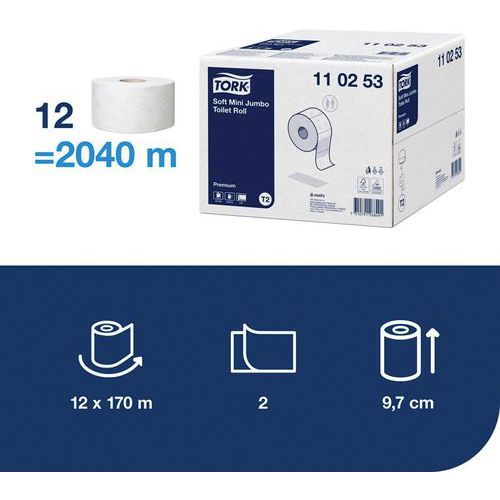 Mini and Maxi Jumbo Tork Premium toilet paper, Number of plies: 2, Roll length: 1700 cm, Colour: White Mini and Maxi Jumbo Tork Premium toilet paper, Number of plies: 2, Roll length: 1700 cm, Colour: White