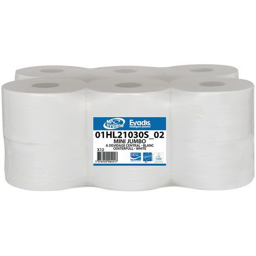 | Product Name | Mini Jumbo toilet paper, Number of plies: 2, Roll length: 210 m, Colour: White, Grammage: 14.5 g/m² |
