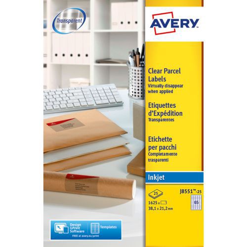 | Product Name | Mini transparent label 38.1x21.2 mm, Number of labels/sheet: 65, Number of labels: 1625 |
