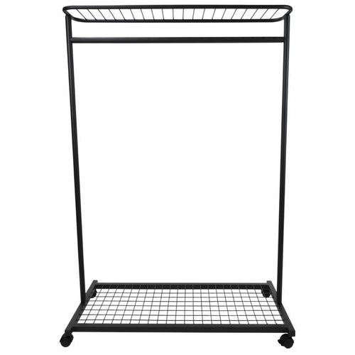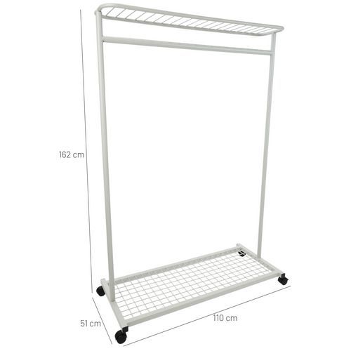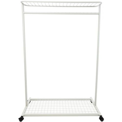 A strong and stable clothes rail with racks at both top and bottom.
