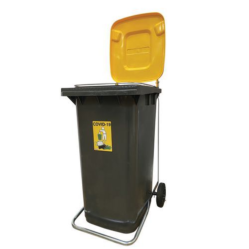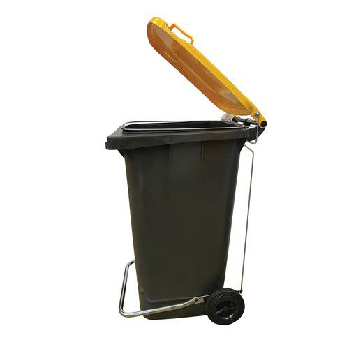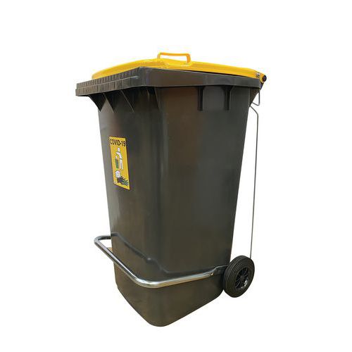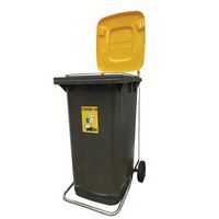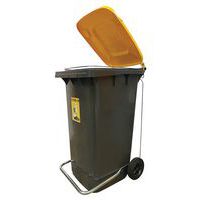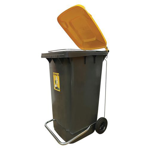 Mobile sanitary bin with pedal that is hygienic. Container is easy to maintain thanks to its smooth plastic surface. Waste sorting container with yellow lid and dedicated label. The container is very stable and easy to move with two solid wheels. Quick and easy self-assembly.