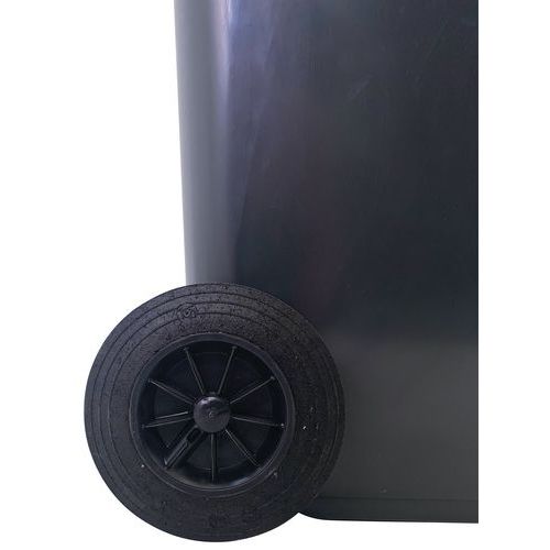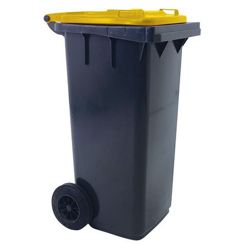 UV-resistant container. Easy to move thanks to its two sturdy wheels. Smooth plastic surface for easy cleaning. Different lid colours make waste sorting easier. For outdoor use