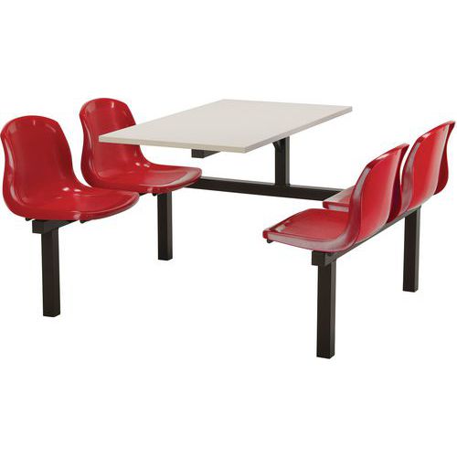 Sturdy and affordable canteen furniture with 4 fixed chairs and a 1-way entry