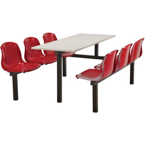 Sturdy and affordable canteen furniture with 6 fixed chairs and a 1-way entry