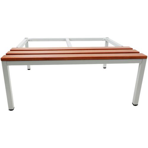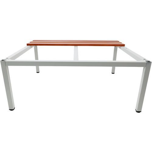 Bench base on legs for Modulo locker. Allows users to sit down comfortably. Easy access under the frame for maintenance. Metal frame with attractive painted finish, wooden seat.