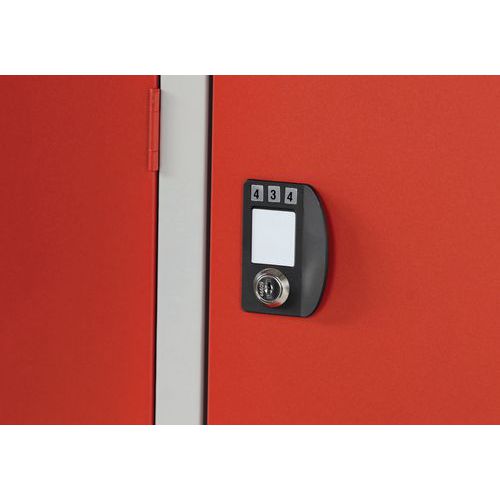 Multi-compartment locker with an attractive epoxy paint finish. With rounded corners for maximum safety. Locker with an ultra scratch-resistant coating. Plastic door stops for silent closure. Ventilation slot at the back of each compartment. Closing handle with label holder.