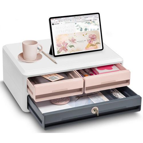 GDPR compliant: The three drawers can be locked and there is a port on the back for installing an anti-theft cable (not included).