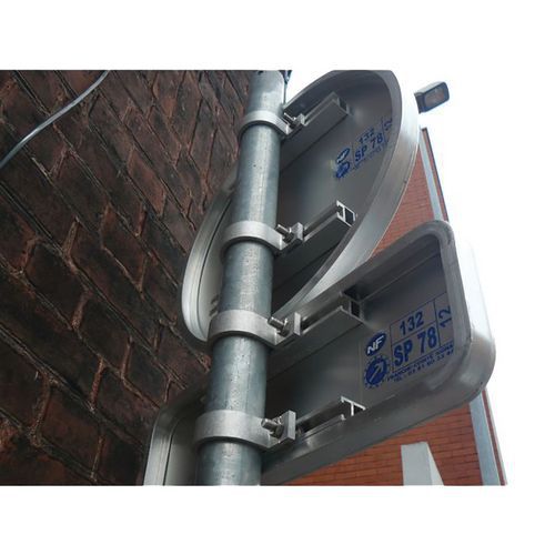 | Product Name | Mounting clamp for sign post, Type of product: Sign mounting , Colour: Light grey, Material: Steel |