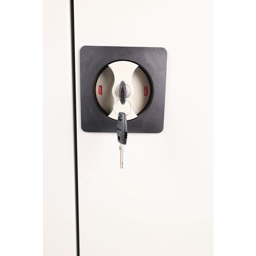 - This multi-purpose lockable storage cupboard features a 2-point cylinder locking system to keep the contents safe.