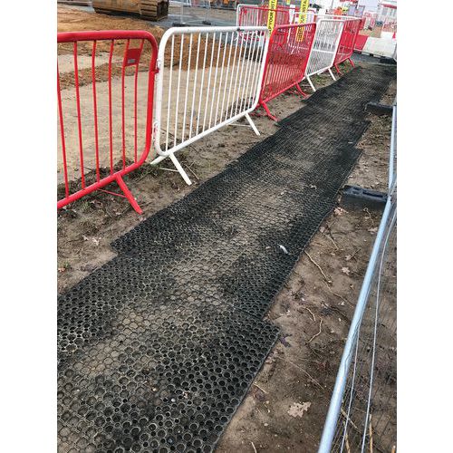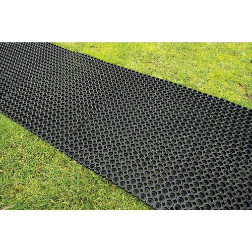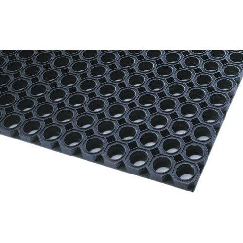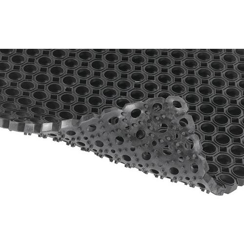 Oct-O-Mat™ traditional octagonal rubber outdoor mat, generous thickness of 23 mm. Large holes for excellent grip and drainage, even in extreme weather conditions. For impeccably clean shoes, with sole scraping function and high retention of collected dirt. Designed for intensive use: Made from hard-wearing, easy-care rubber material. Excellent adhesion on all types of background thanks to the elastic rubber surface. Perfect drainage with raised knobs under the mat to facilitate draining.