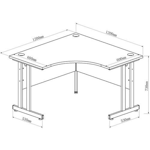 Three cable ports allow for the tidy control of cables. Secure steel-to-steel fittings make this desk a sturdy build. The melamine finish is smart, robust and heat-resistant. Features 2mm protective ABS edging to protect the sides of the desk. Thick 25mm desk top. A deep-set modesty panel allows for compatibility of most screen clamp fittings. The modesty panels are 18mm thick. Adjustable feet for levelling the desk on uneven floors. Assembly : Self-assembly