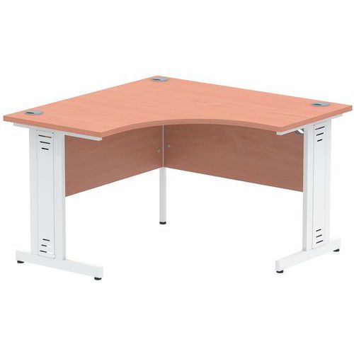 Three cable ports allow for the tidy control of cables. Secure steel-to-steel fittings make this desk a sturdy build. The melamine finish is smart, robust and heat-resistant. Features 2mm protective ABS edging to protect the sides of the desk. Thick 25mm desk top. A deep-set modesty panel allows for compatibility of most screen clamp fittings. The modesty panels are 18mm thick. Adjustable feet for levelling the desk on uneven floors.