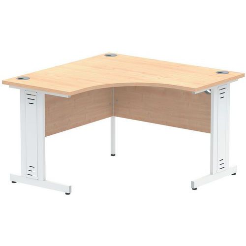 Three cable ports allow for the tidy control of cables. Secure steel-to-steel fittings make this desk a sturdy build. The melamine finish is smart, robust and heat-resistant. Features 2mm protective ABS edging to protect the sides of the desk. Thick 25mm desk top. A deep-set modesty panel allows for compatibility of most screen clamp fittings. The modesty panels are 18mm thick. Adjustable feet for levelling the desk on uneven floors.