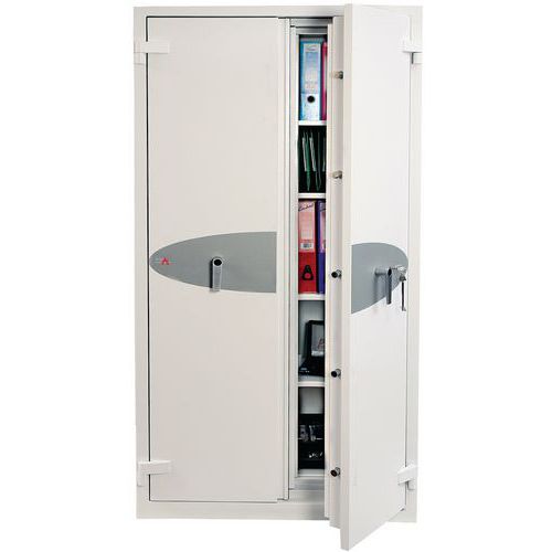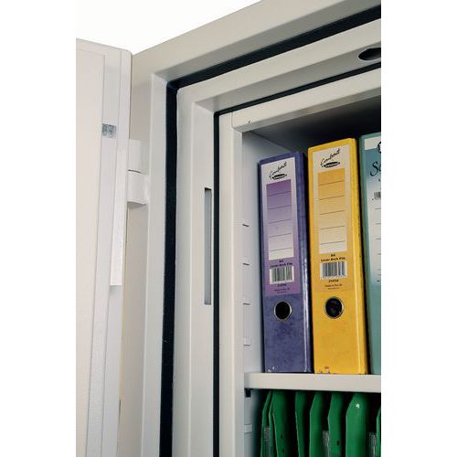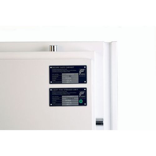 Tested to the Swedish NT Fire 017-120 Paper standard, providing 120 minutes of fire protection for paper documents. Tested to MTC DIP120-60DM Fire Test standard, providing up to 60 minutes of fire protection for DVDs, memory sticks and hard drives. Fitted with an advanced high-security touchscreen keypad & fingerprint lock with a clear LED display, internal alarm, dual control, hidden code and scrambled code that can be programmed as standard with up to 128 fingerprints. The safe is recommended for an overnight cash risk of £2,500 or £25,000 valuables. Fire and impact tested from 9.1 metres for resistance to the impact of falling through the burning floors of a building. Supplied with height adjustable shelves that also include hanging rails for lateral files as standard. Finished in a high-quality scratch-resistant white paint RAL9003. Maintain GDPR Compliance at home or in the office by keeping your company’s vital and important records secure and protected. Customer warranty : 2 years