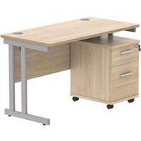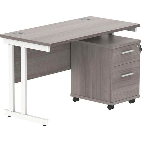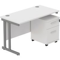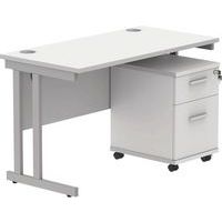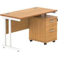 Office Desk - 1200x600mm - 2-Drawer Mobile Under Pedestal - 2 Uprights