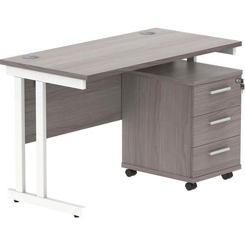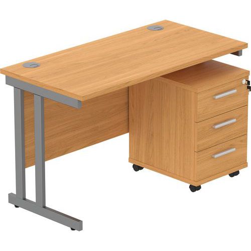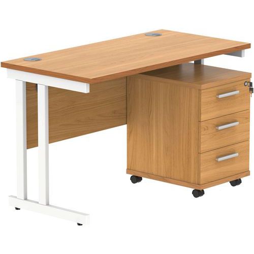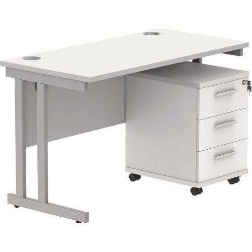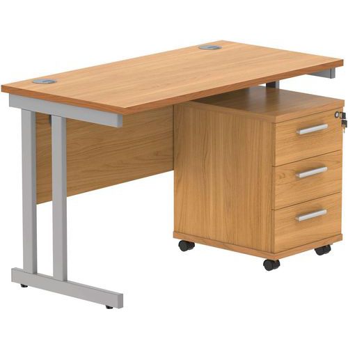 Office Desk - 1200x600mm - 3-Drawer Mobile Under Pedestal - 2 Uprights