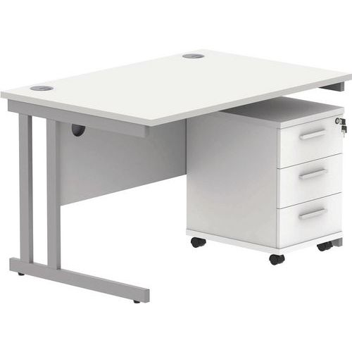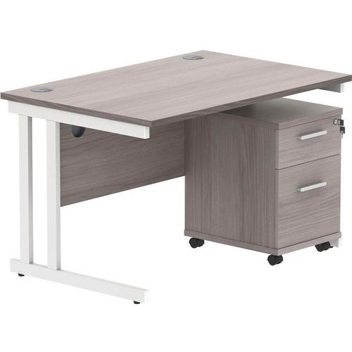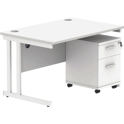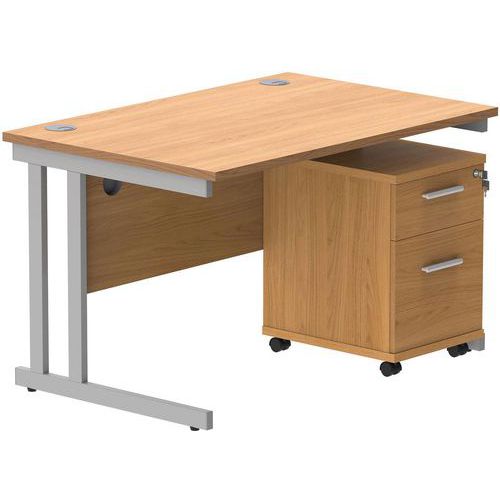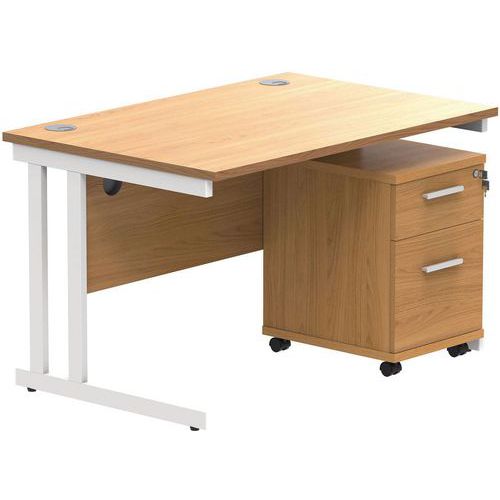 Office Desk - 1200x800mm - 2-Drawer Mobile Under Pedestal - 2 Uprights