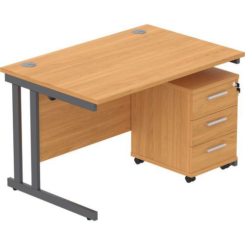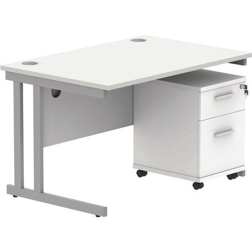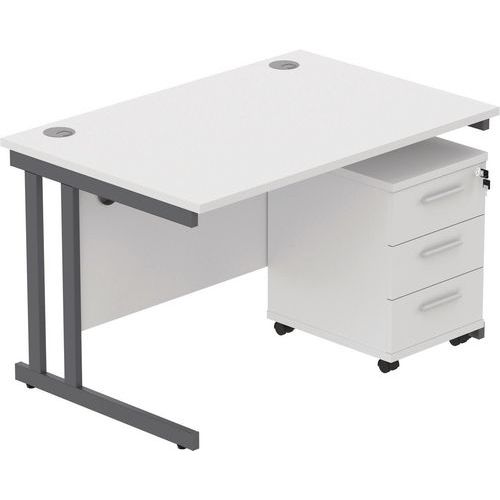 Office Desk - 1200x800mm - 3-Drawer Mobile Under Pedestal - 2 Uprights