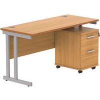 Office Desk - 1400x600mm - 2-Drawer Mobile Under Pedestal - 2 Uprights