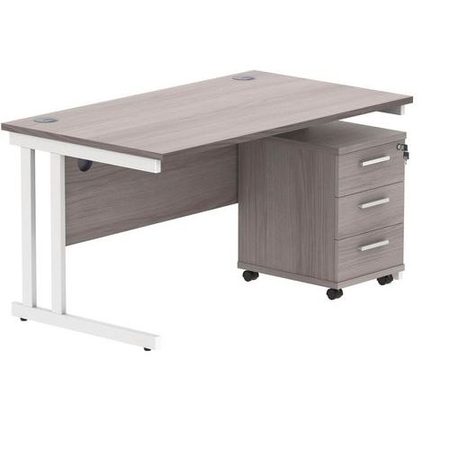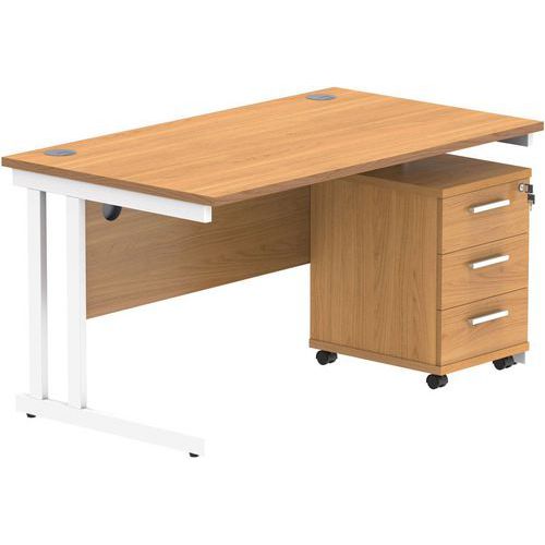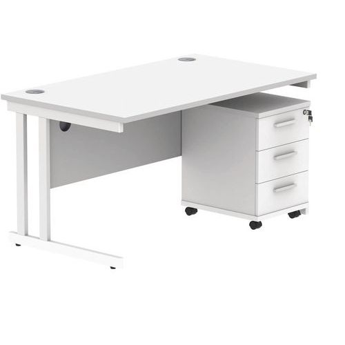 Office Desk - 1400x800mm - 3-Drawer Mobile Under Pedestal - 2 Uprights