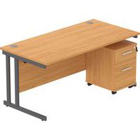 Office Desk - 1600x800mm - 2-Drawer Mobile Under Pedestal - 2 Uprights