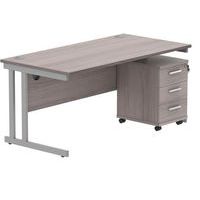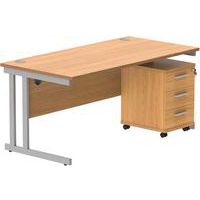 Office Desk - 1600x800mm - 3-Drawer Mobile Under Pedestal - 2 Uprights