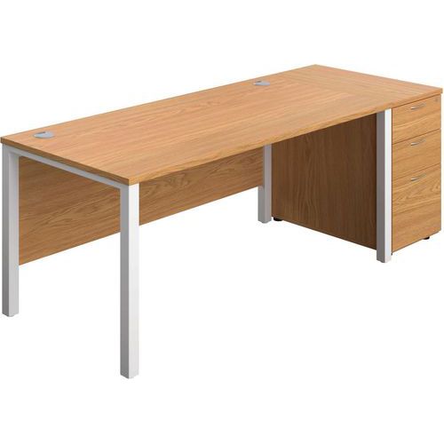 Office Desk - 3-Drawer High Pedestal & Goal Post Legs - WxD 1600x800mm