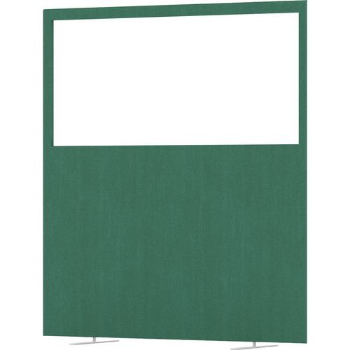 Clear acrylic shatter-proof vision panels. Gives an overview of office or public areas. uPVA protective edge trim. Flame retardant fabric to BS476-Part 7, class 1. Combustion-modified foam as standard. Wood and MDF subframe for strength.