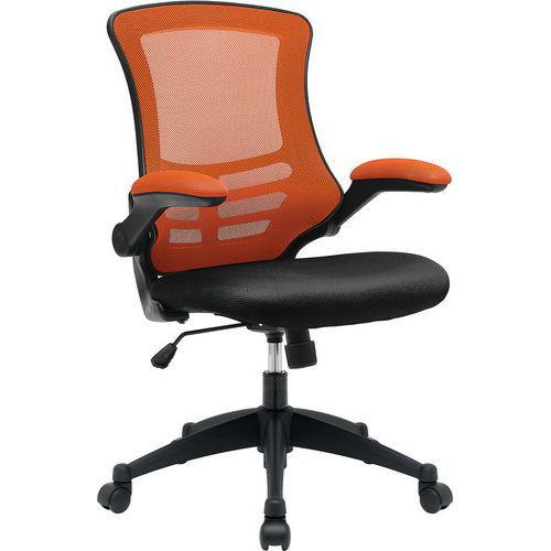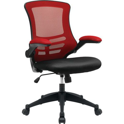 Office Operator Chair - Mesh Back - Padded Folding Arms & Black Seat