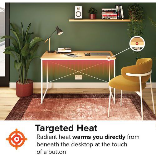 - The heat is directed down underneath the desk, using insulation with radiant heat technology.