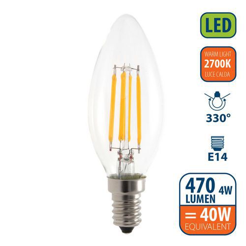 Olive C35 4-W E14 cap LED filament bulb - VELAMP