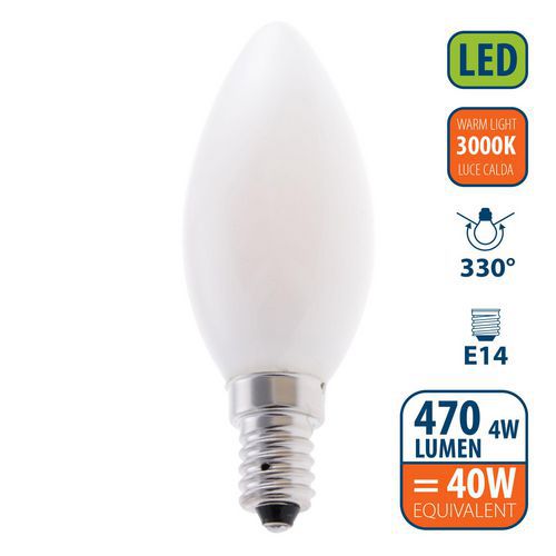 Olive C35 4-W E14 cap opal LED filament bulb - VELAMP