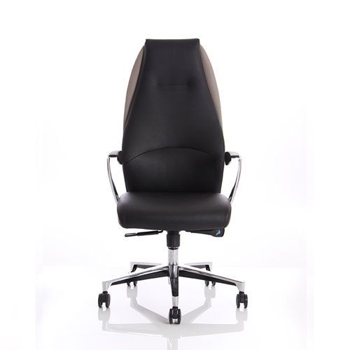 Plush high back executive leather office chair with skilled stitching detail and soft leather finish.
