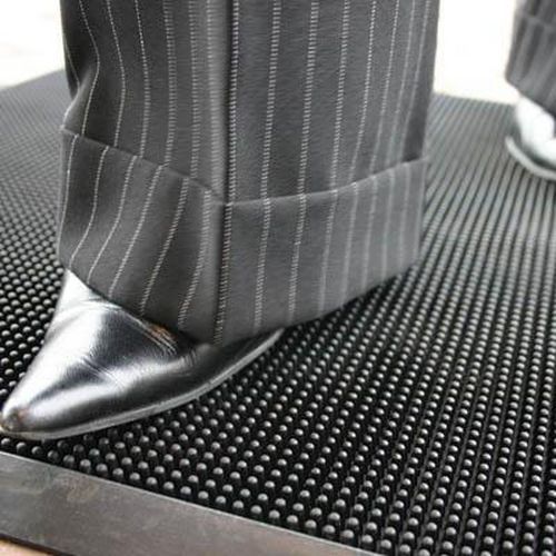 Flexible rubber nodules scrape off dirt, retaining it in the solid base.