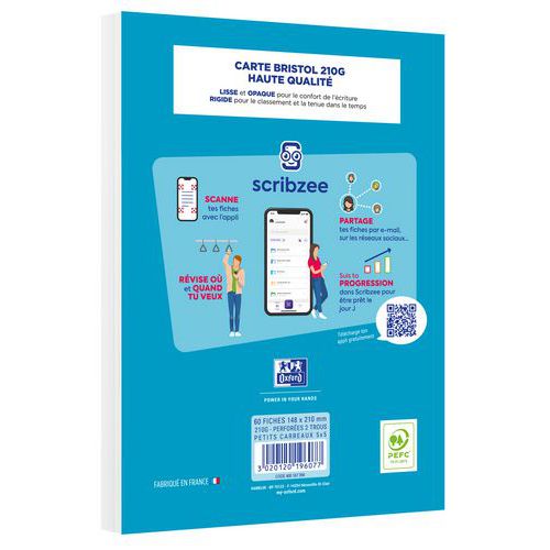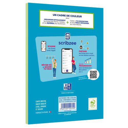 Oxford pad of flashcards 148x210, 30 punched cards, 5x5 squared - Oxford