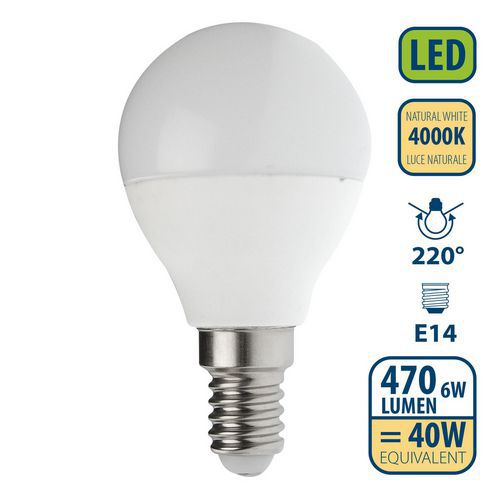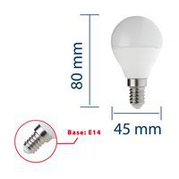 P45 6-W, E14 cap mini-sphere SMD LED bulb, Luminous flux: 470 lm, Cap type: E14