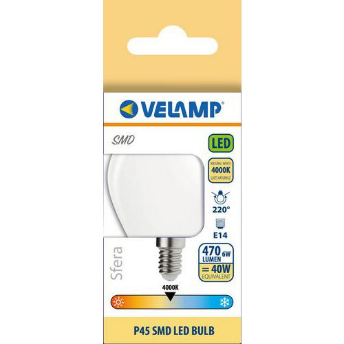 P45 6-W, E14 cap mini-sphere SMD LED bulb - VELAMP