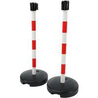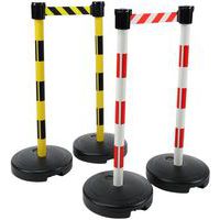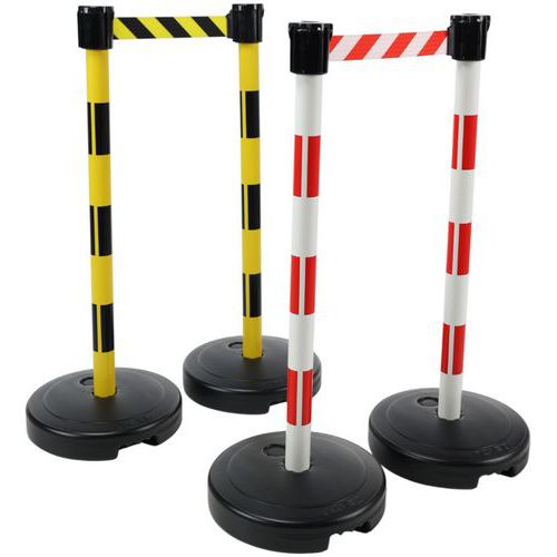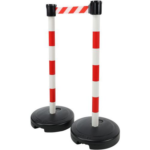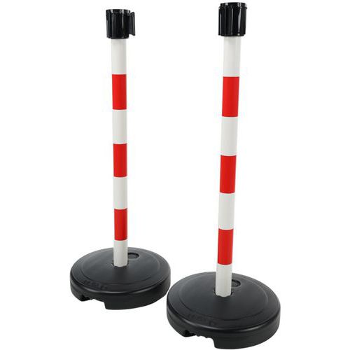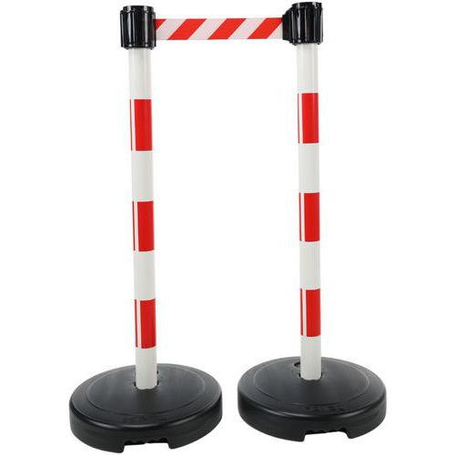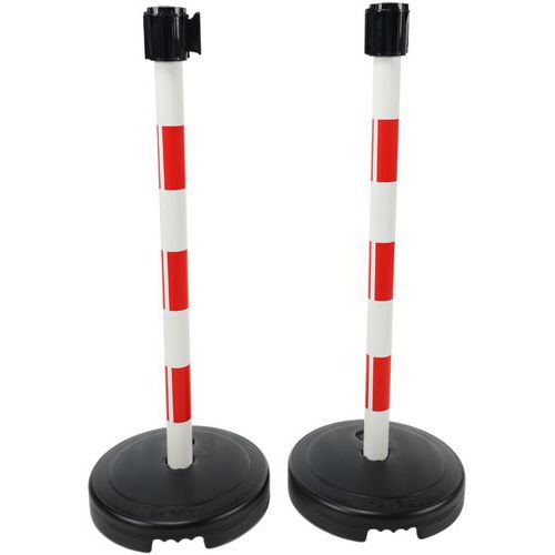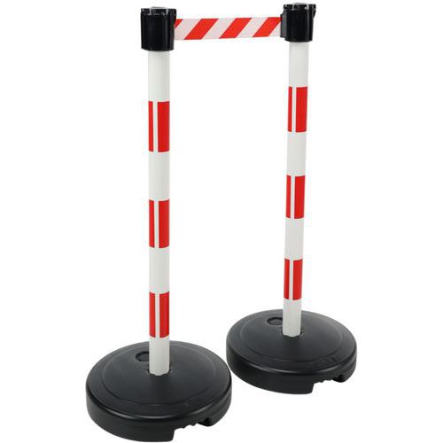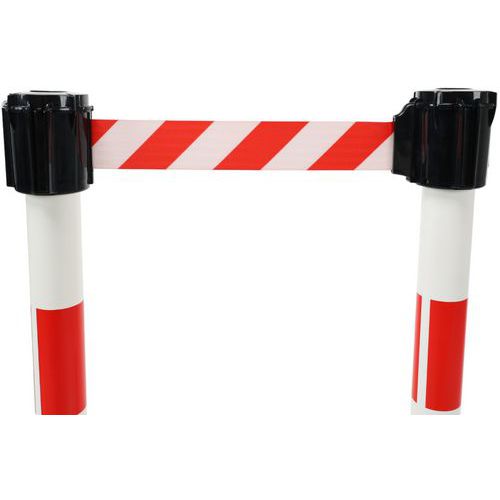 Kit includes 2 posts: 1 post equipped with a head for dispensing the retractable strap (length 3 m, width 50 mm) and 1 post equipped with a head for receiving the retractable strap.