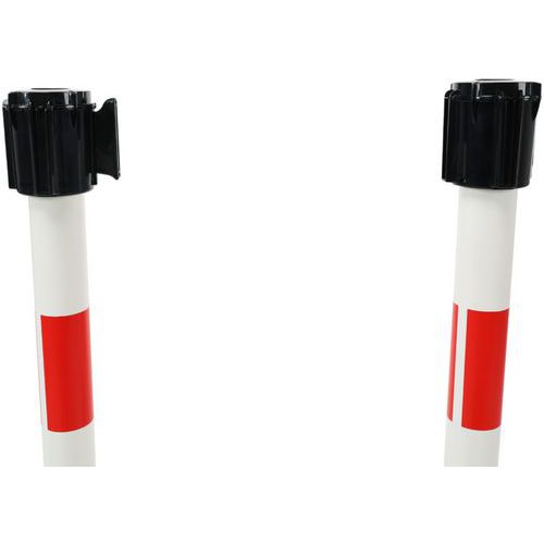 Kit includes 2 posts: 1 post equipped with a head for dispensing the retractable strap (length 3 m, width 50 mm) and 1 post equipped with a head for receiving the retractable strap.