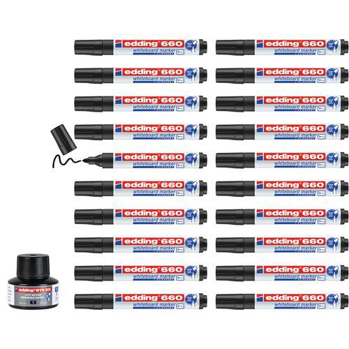 | Product Name | Pack of 20 e660 black markers + 1 free refill, Ink colour: Black, Body materials: Plastic |