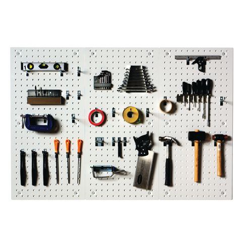 | Product Name | Perfo Light panel and hooks, Colour: Grey, Panel width: 500 mm, Panel height: 1000 mm, Number of panels: 3 |
