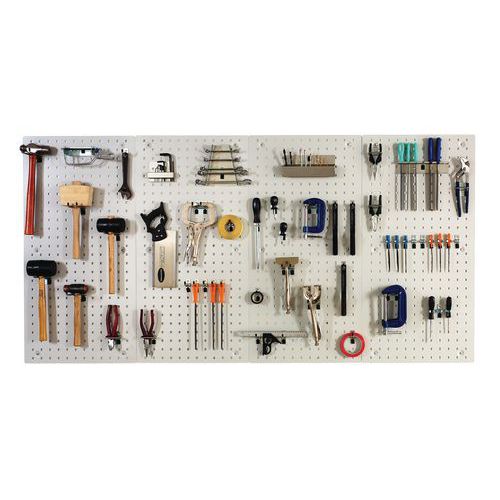 | Product Name | Perfo Light panel and hooks, Colour: Grey, Panel width: 500 mm, Panel height: 1000 mm, Number of panels: 4 |