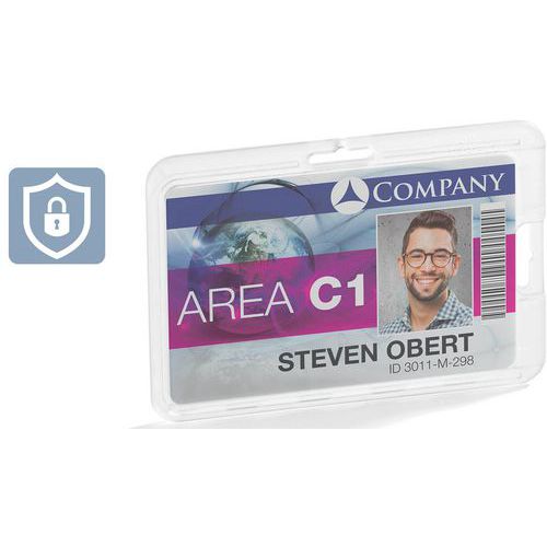 | Product Name | Permanent badge holder for 1 security card, Height: 54 mm, Width: 87 mm, Material: Polycarbonate |