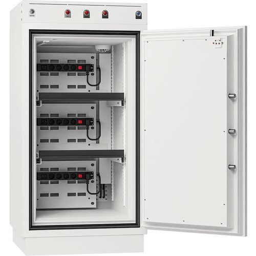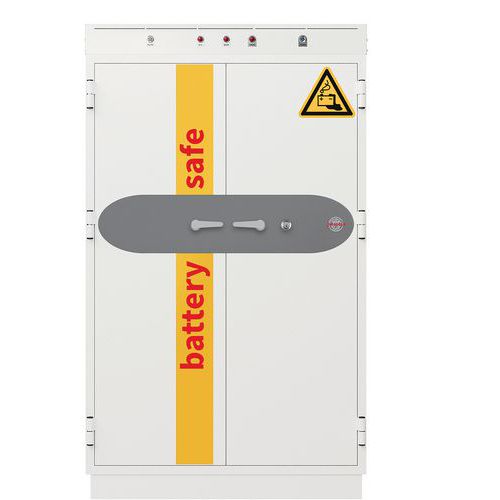 Safely stores and charges all Lithium-ion batteries up to 25 kg - key locking.