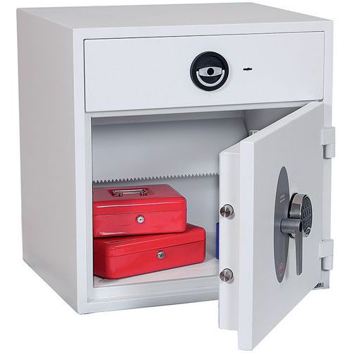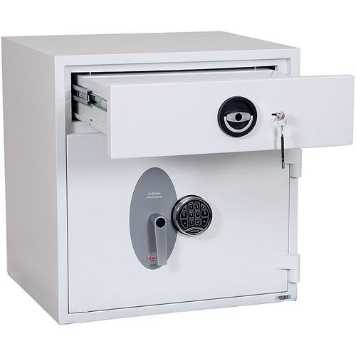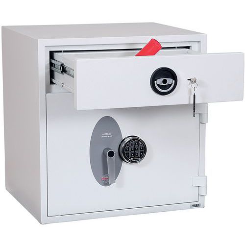 High-security pull-out drawer deposit with unique baffle drop system for maximum security.