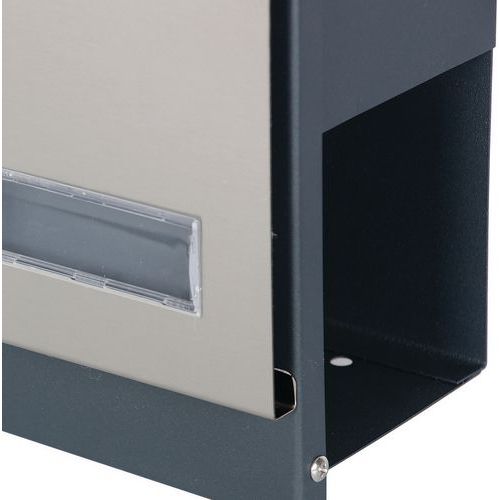 Fitted with a high-quality key lock and is supplied with three keys. Suitable for wall mounting with pre-drilled holes and fixings supplied. Heavy-duty construction allows a lengthier product lifespan than other thinner-walled letter boxes. A zinc galvanised coating prevents oxidisation of the letterbox and gives it a corrosion-resistant, weather-proof and rust-proof finish. Newspaper tray at the base. Finished in a high-quality Stainless Steel. Height and width of the letter slot: 35x335mm.