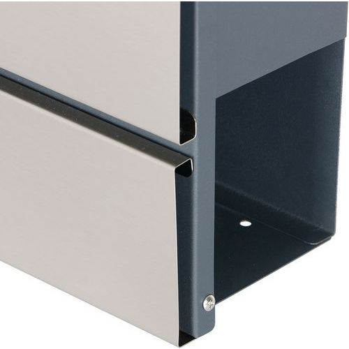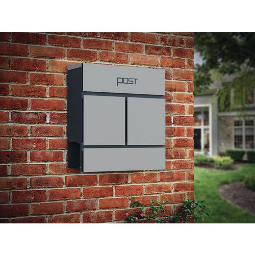 Fitted with a high-quality key lock and is supplied with three keys. Suitable for wall mounting with pre-drilled holes and fixings supplied. Heavy-duty construction allows a lengthier product lifespan than other thinner-walled letter boxes. A zinc galvanised coating prevents oxidisation of the letterbox and gives it a corrosion-resistant, weather-proof and rust-proof finish. Newspaper tray at the base. Finished in a high-quality Stainless Steel. Height and width of the letter slot: 35x335mm.