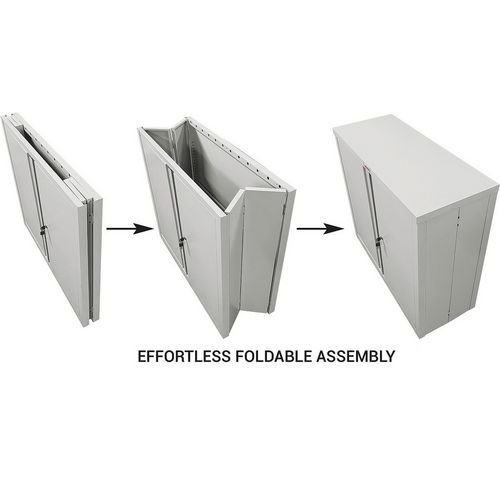 These foldable steel storage cupboards are ingeniously designed for effortless assembly, allowing the end user to unfold and secure the unit in under five minutes, resulting in a fully functional storage solution with minimal effort. They can also be easily disassembled for relocation.